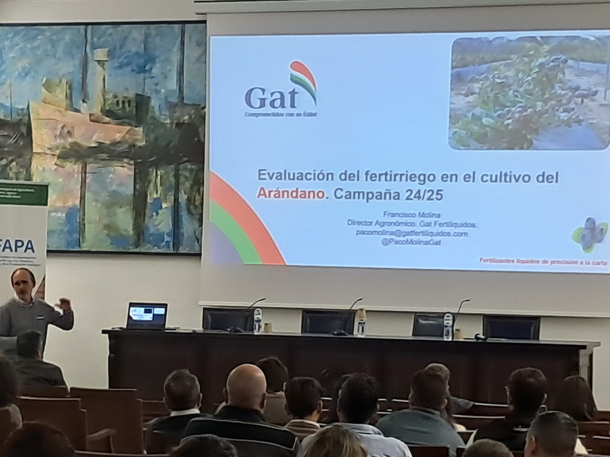 En este marco, Gat Fertilíquidos presentó los resultados de los ensayos de fertirrigación desarrollados junto a IFAPA en la Finca Experimental “El Cebollar” (Moguer, Huelva), en los cultivos de arándano, fresa y frambuesa durante la campaña 2024/25. El trabajo se orienta a mejorar la eficiencia en el uso del agua y de los fertilizantes, contribuyendo a una producción de frutos rojos más competitiva y sostenible.